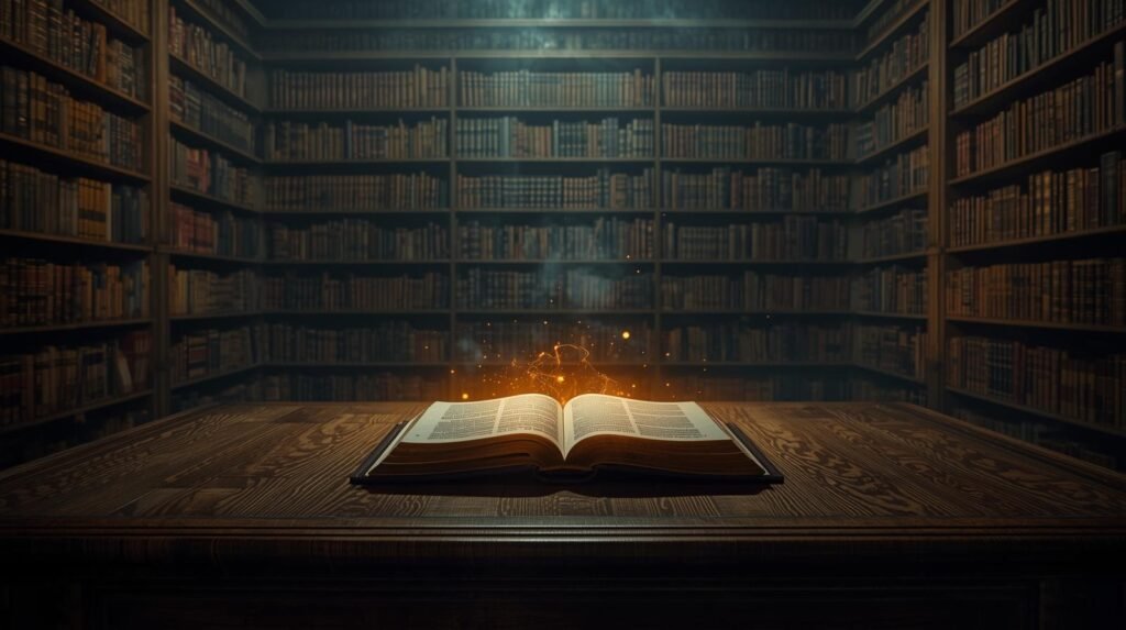 Enfin, tout au fond de la bibliothèque, un livre mystérieux attire le regard.
